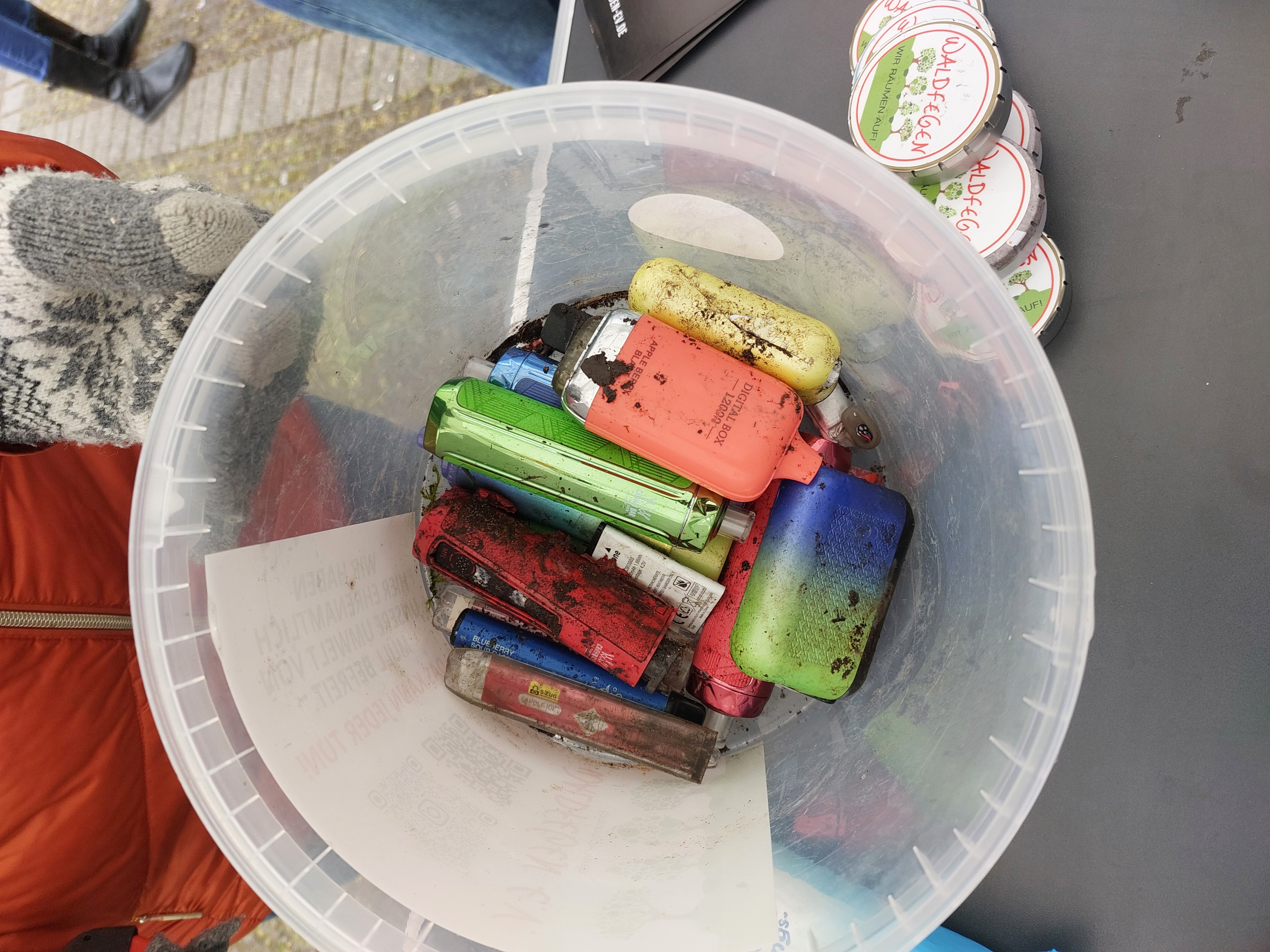 Am Sonntag haben wir den Verein Waldfegen dabei unterstützt, die Umgebung um das Bottroper Tetraeder von Müll zu befreien. Neben einem kleinen Infostand haben wir selbst beim Müllsammeln mitgeholfen. Bereits auf dem Parkplatz fanden sich viele Zigarettenstummel, kleine Plastikteile sowie auffällig viele E-Zigaretten. Unsere größten Funde allerdings waren ein Outdoor- Sonnenschirm und ein noch reparierbares Fahrrad, welches im Wald entsorgt worden ist. Insgesamt konnte das Team innerhalb von ca. 1,5 Stunden bereits einen gesamten Container mit Müll füllen. Die Aktion hat erneut gezeigt, wie viel Abfall sich auch in vermeintlich natürlichen Erholungsräumen ansammelt und wie wichtig es auch ist am Problem, dem übermäßigen Konsum, anzusetzen.