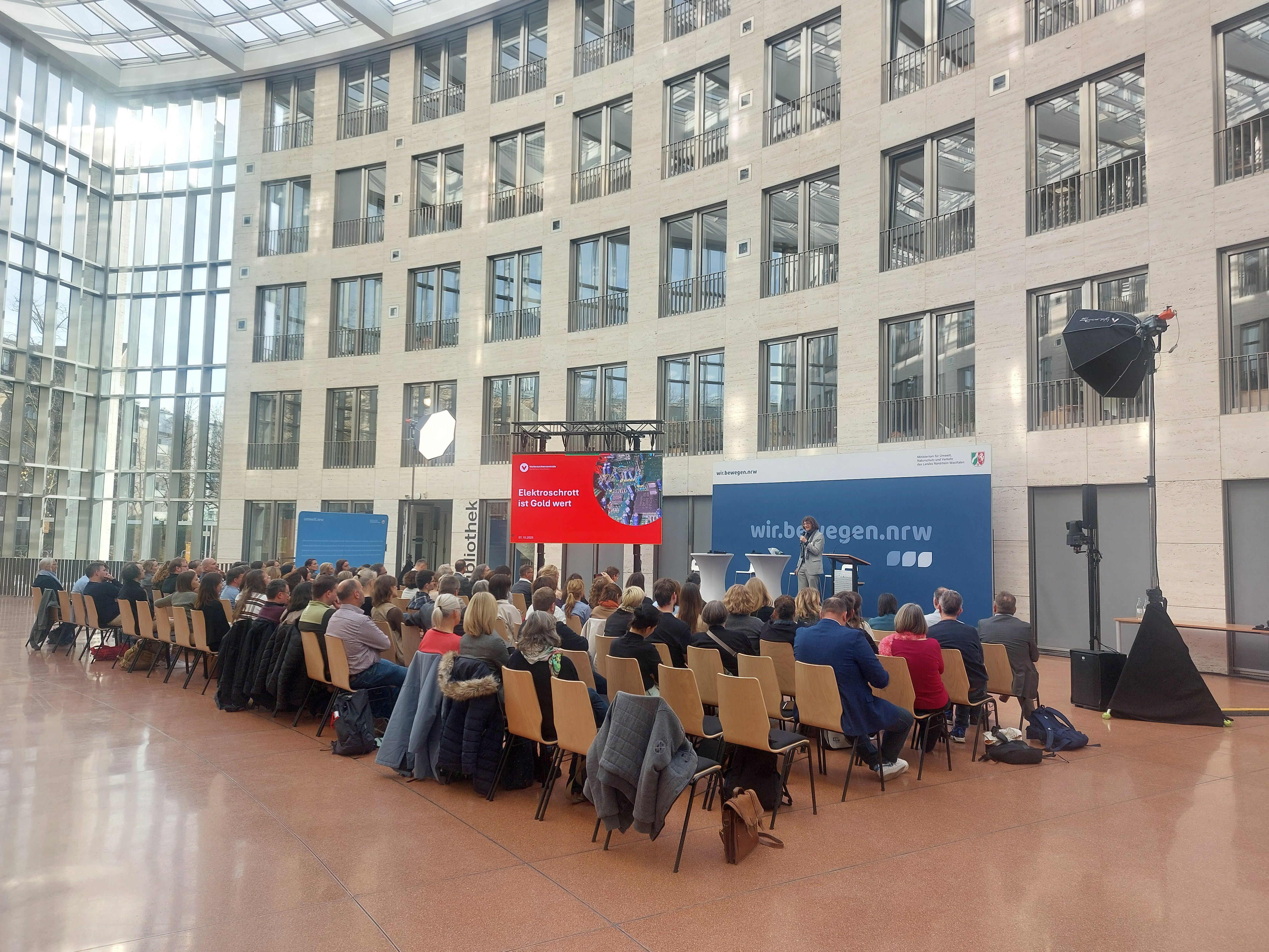 Im Projekt CircleUp versuchen wir uns immer mit Leuten und Institutionen zu vernetzen, die die selben Visionen haben, wie wir. Deshalb sind wir sehr glücklich, dass wir dieses Jahr bei der Abfallvermeidungstagung der Europäischen Woche zur Abfallvermeidung im Ministerium für Umwelt, Naturschutz und Verkehr NRW, dabei sein durften. Hier drehte sich alles um die Vermeidung von Abfällen besonders im Bereich der Elektro- und Elektronikgeräte.