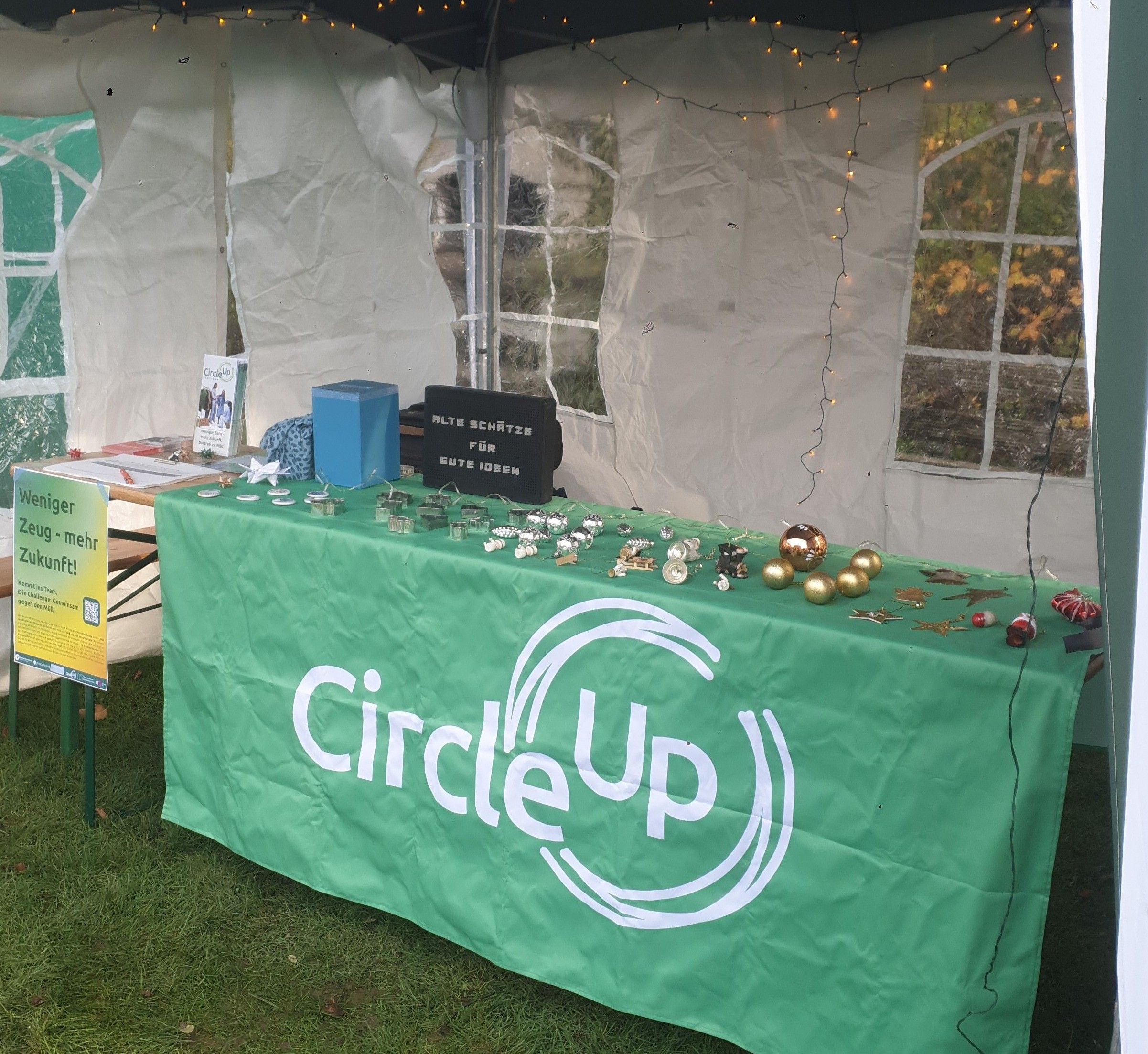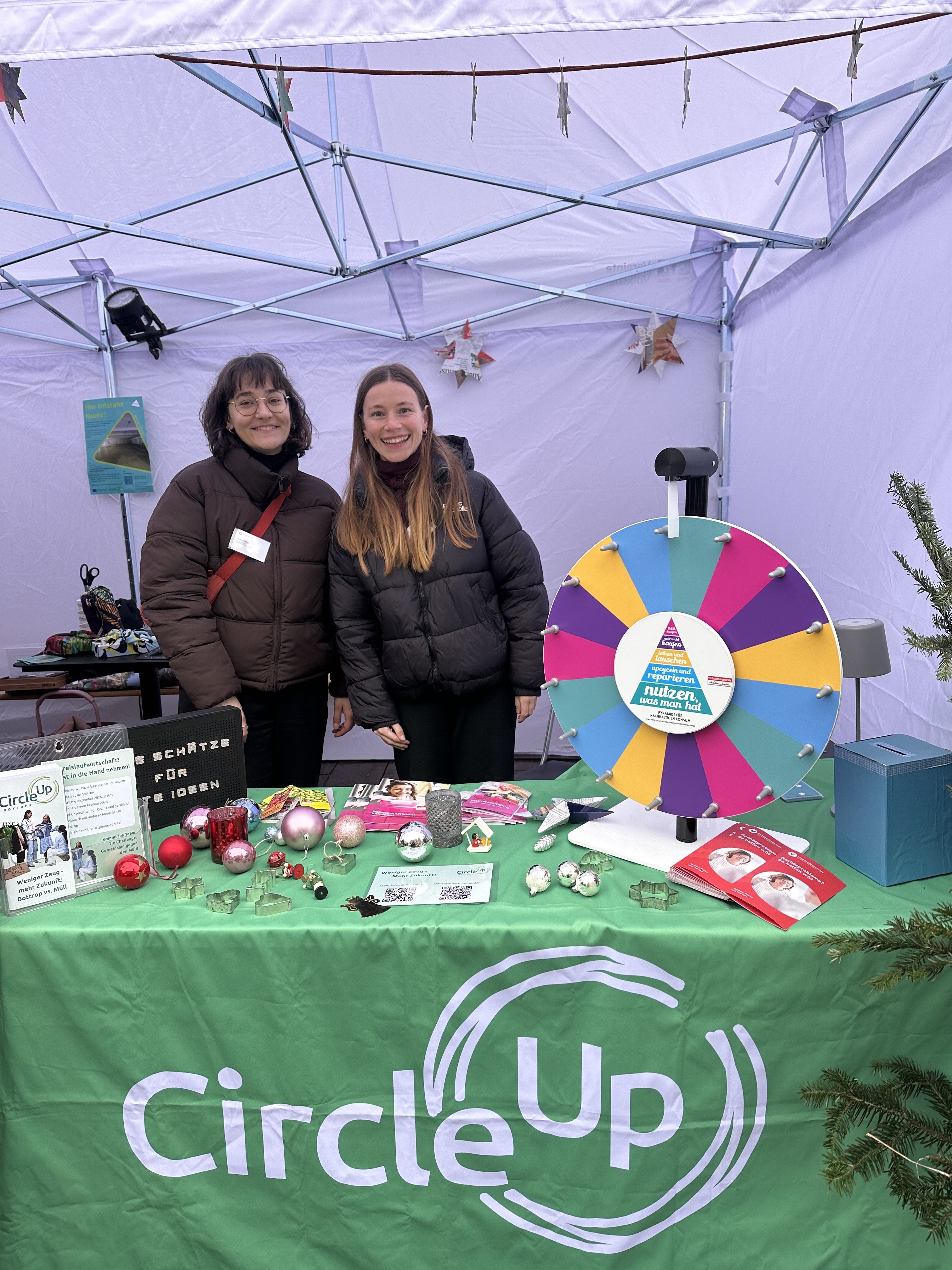 Zwischen Grünkohl, Waffeln, Chorgesängen und zahlreichen Ständen mit nachhaltigen Ideen war auch das CircleUp-Projekt erneut vertreten. Mit einem Circle-Quiz und der Chance, secondhand Weihnachtsbaumschmuck zu gewinnen, lud unser Stand viele Bottroper:innen zum Verweilen ein. In entspannter Atmosphäre – trotz der oft sehr konsumgeprägten Weihnachtszeit – entstanden Gespräche über zirkuläre Geschenkideen ebenso wie über nachhaltige, zirkuläre Gewohnheiten im Alltag.