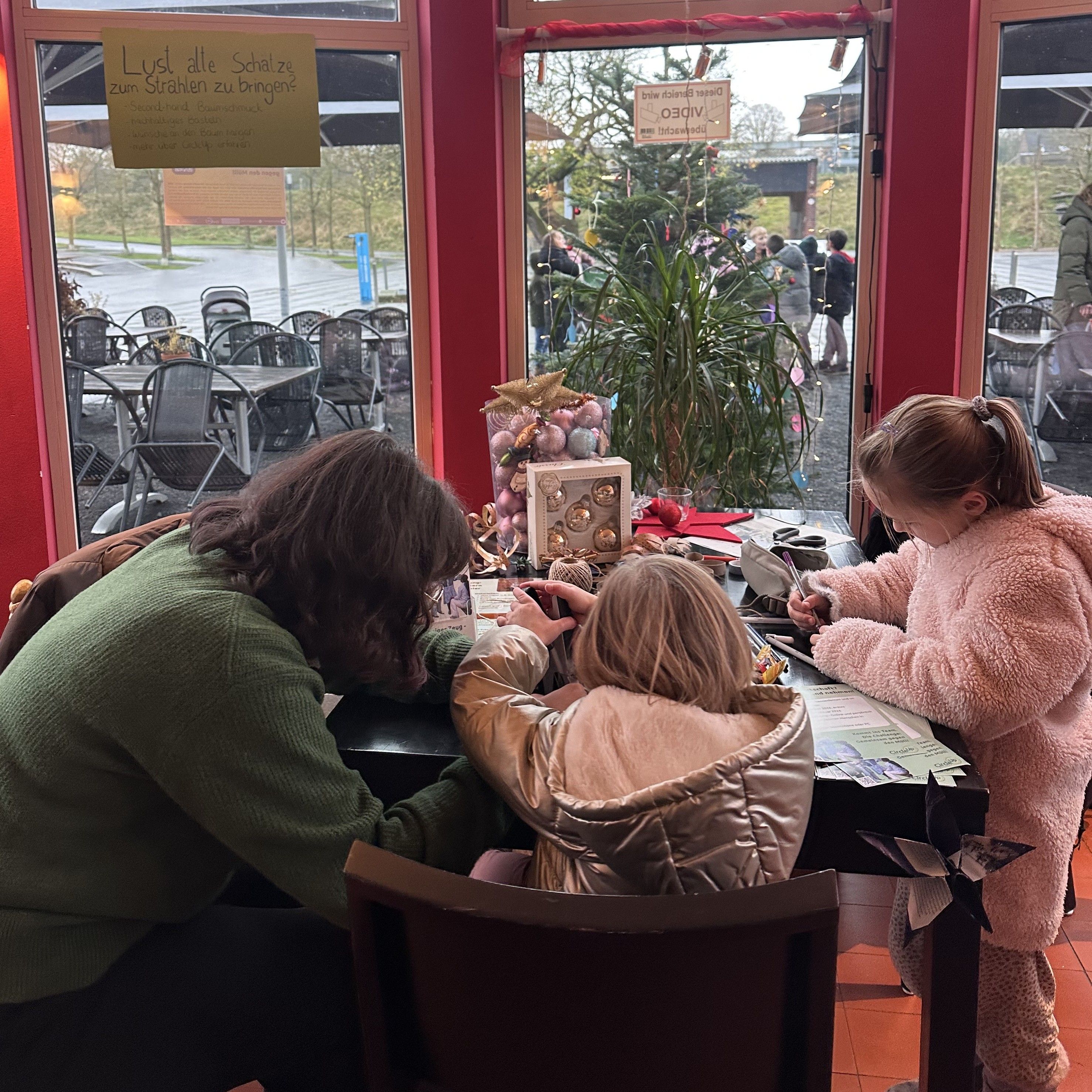 Weihnachtlich wurde es nachmittags bei den Naturfreunden: Auch hier konnten Interessierte ihre Ideen für weniger Müll im Alltag teilen oder eine Quizfrage beantworten. Als Dankeschön durften sich die Teilnehmenden anschließend einen 2nd-Hand-Weihnachtsdeko-Klassiker aussuchen: