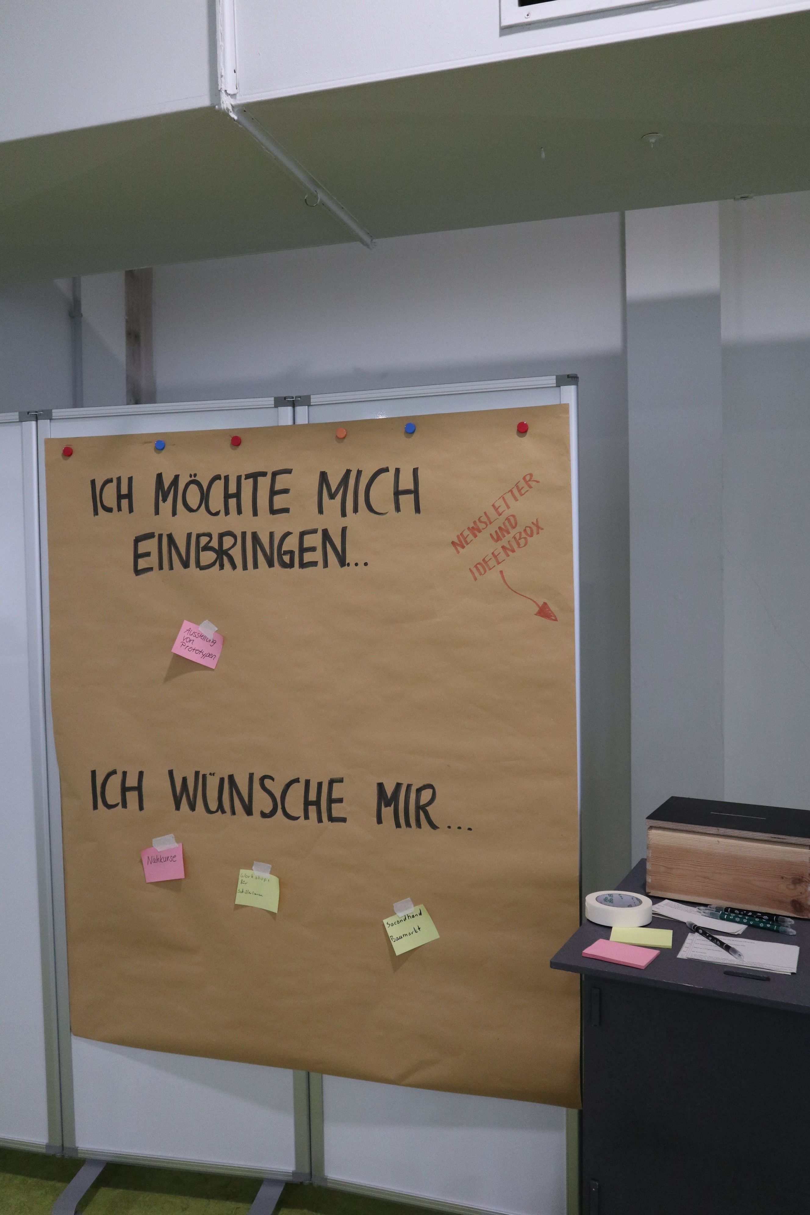 Beispielsweise wird aktuell bemängelt, dass Informationen zu Initiativen für nachhaltige Themen mitunter schlecht zu recherchieren seien. Allgemeine Unwissenheit und fehlende Anreize zur Nutzung nachhaltiger Angebote und Gegenstände verstärken das Problem. Dies könnte durch eine potenzielle gemeinsame Online-Plattform vereinfacht werden. Es wird sich ein Raum gewünscht, der multifunktional genutzt werden kann und für die Bottroper Gemeinschaft offen steht. Für ein Bottrop im Jahr 2050 gab es verschiedenste Ideen: Neben starken Radwegen mit innerstädtischen Fahrradgaragen wurden auch gemeinschaftliche Nachbarschaften, die sich gegenseitig austauschen und unterstützen besprochen. Lokale Aktionen wie beispielsweise eine Reparaturstation auf dem Wochenmarkt oder ein größeres Angebot an Flohmärkten wurden ebenfalls diskutiert. Ob kleine lokale Aktionen oder ganzheitliche Zukunftsvisionen, an Ideen fehlte es den Bottroper Gästen nicht.