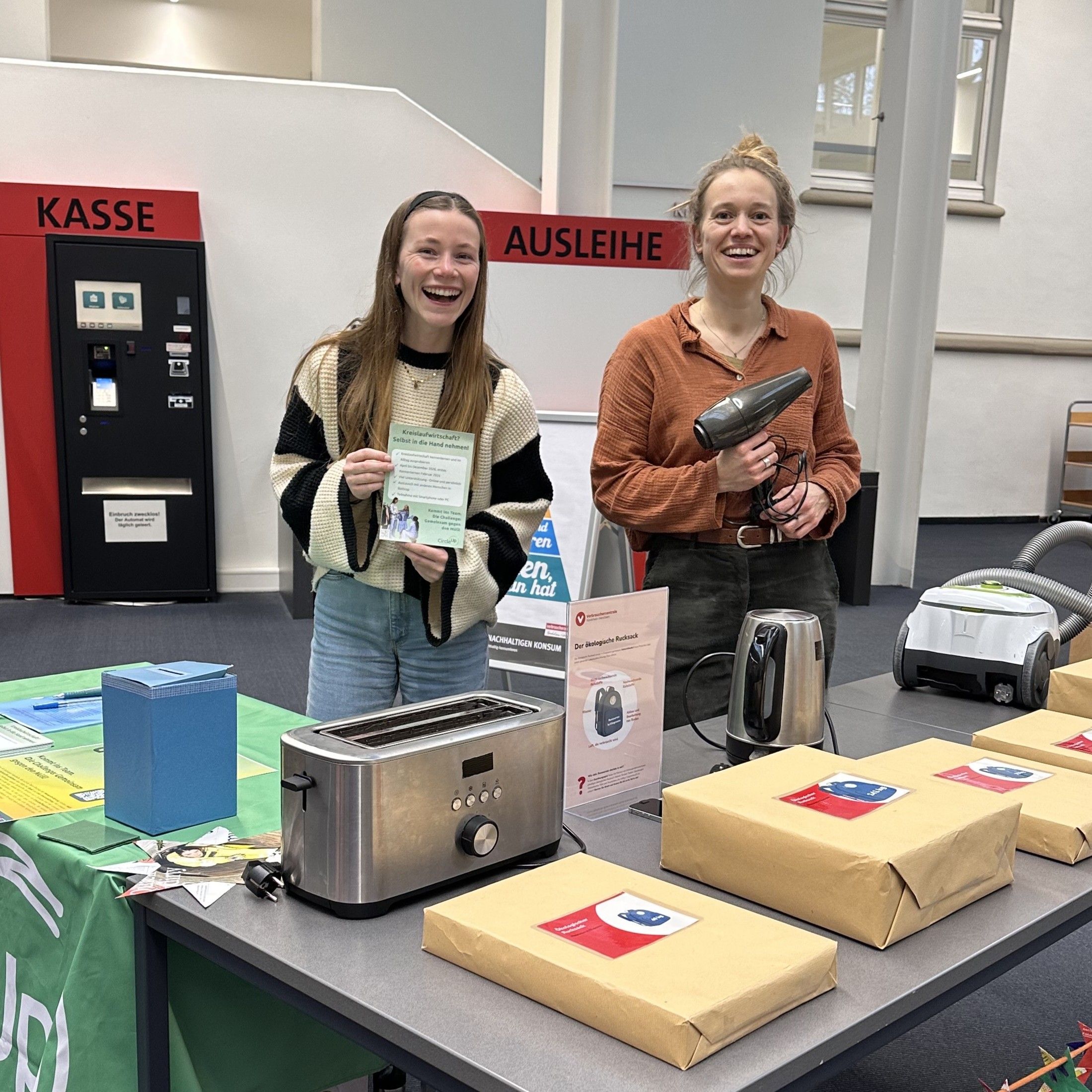 Für unser Projekt CircleUp war die Veranstaltung eine wertvolle Gelegenheit, unser Wissen zu Strategien der Abfallvermeidung im Bereich von Elektro- und Elektronikgeräten zu vertiefen. Gleichzeitig konnten wir wichtige Kontakte zu relevanten Akteur:innen knüpfen, sowohl im Hinblick auf mögliche Workshops im Rahmen des Projekts als auch, um Informationsmaterialien mit praxisnahen Tipps für Teilnehmende zu erhalten. Darüber hinaus erhielten wir hilfreiche Hinweise auf bestehende Informationsquellen, etwa Karten zu Sammelstellen für Altgeräte, die wir an teilnehmende Haushalte weitergeben können. Schließlich bot die Veranstaltung auch die Möglichkeit, unsere eigene Projektidee vorzustellen und wertvolles Feedback von Expert:innen einzuholen.